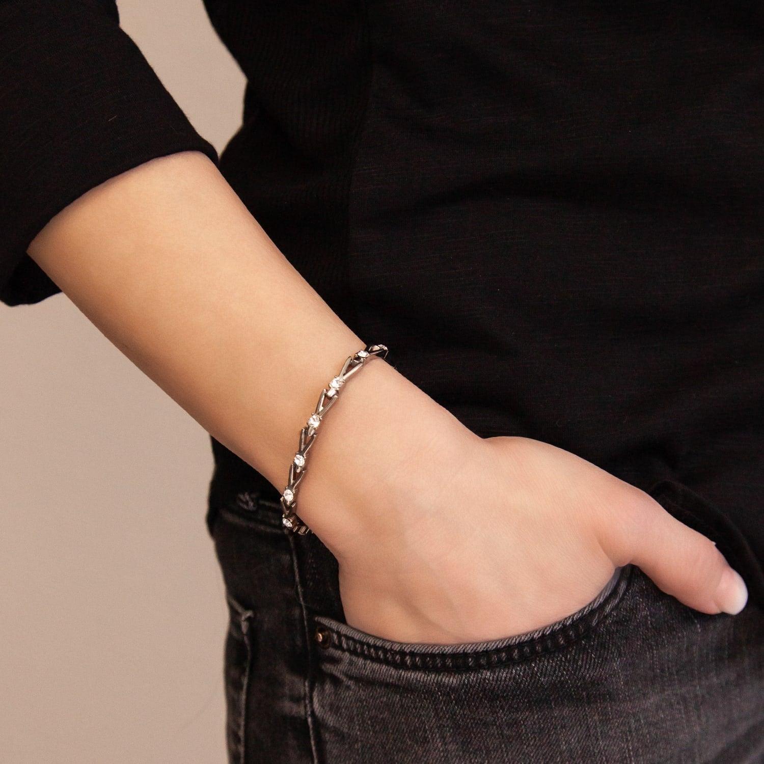 - Lightweight titanium links set with small round crystals for refined sparkle.