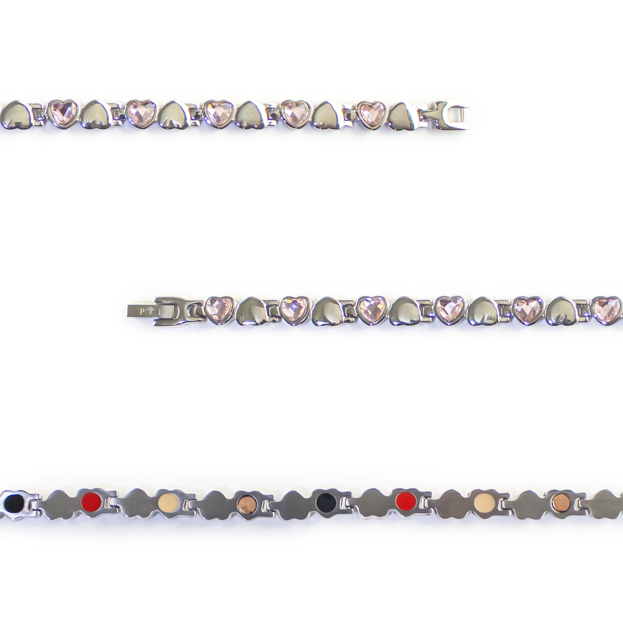 Devotion - Negative Ion Bracelet, Stainless Steel and Pink Hearts