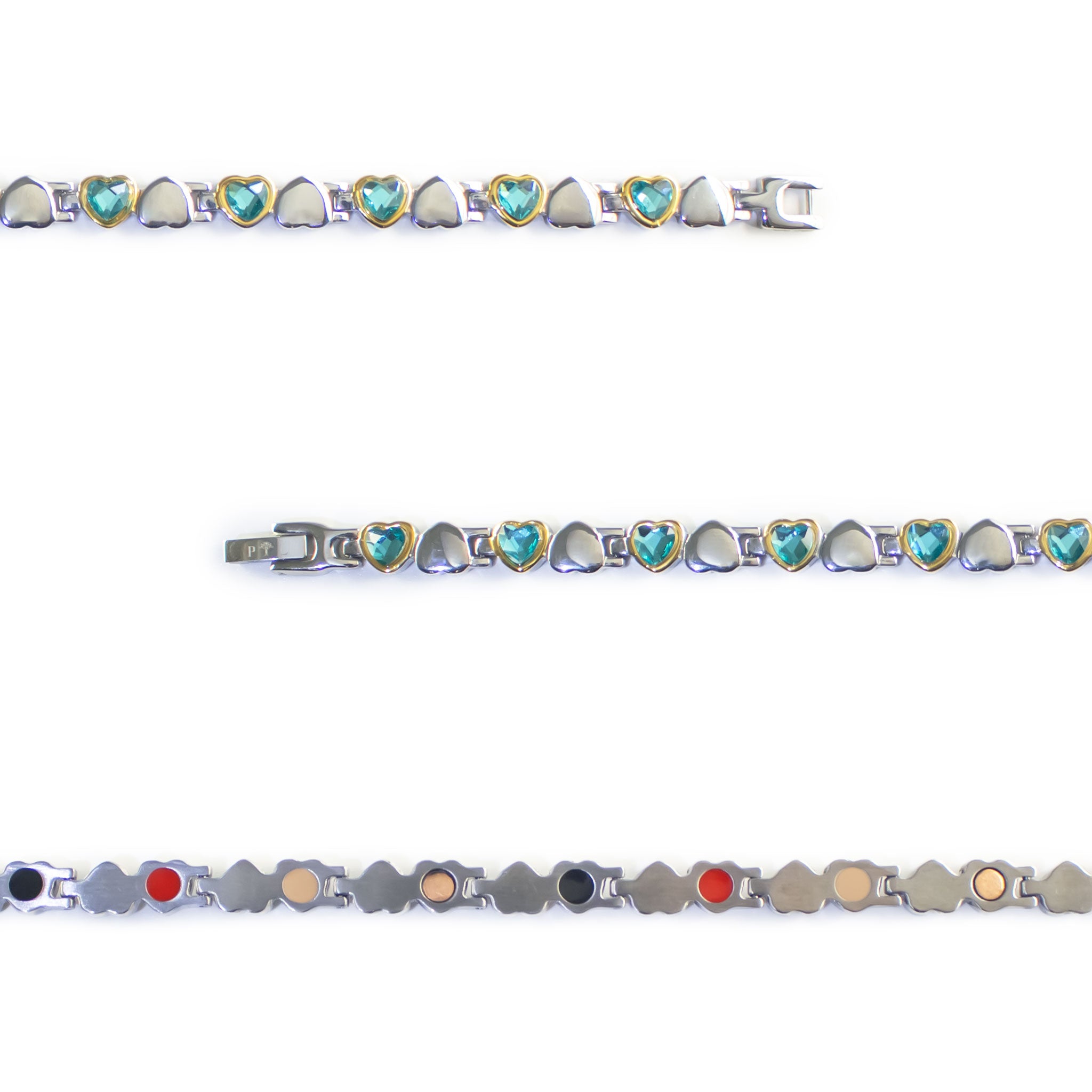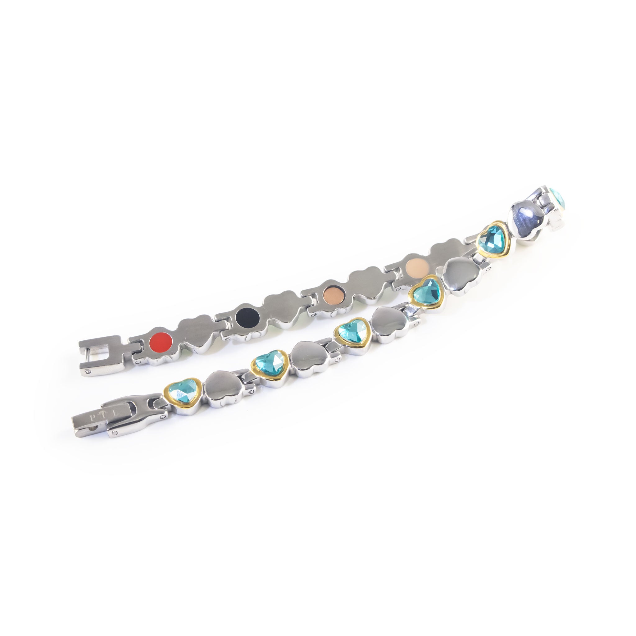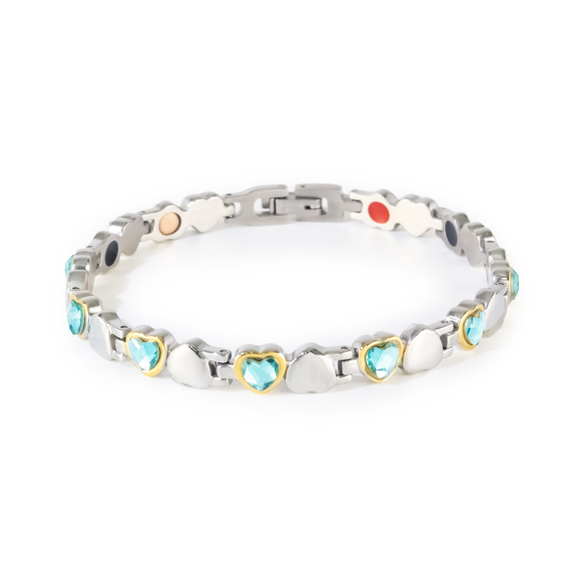 Cherish - Negative Ion Bracelet, Stainless Steel, Gold, and Blue Hearts